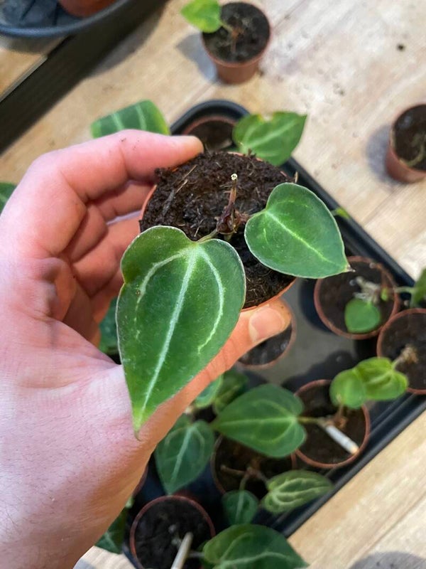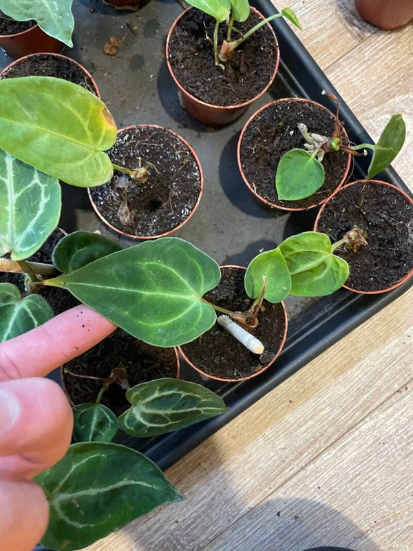 Ondanks haar compacte formaat kan een Baby Anthurium gewoon bloeien – kleine hartvormige bloemen die haar nog meer charme geven.